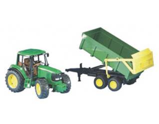 Tracteur vert et jaune avec remorque